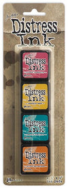 This mini ink pad kit, created by Tim Holtz, features the same unique, water-based dye ink formula found in the full size Distress Ink pads. The stackable 1" x 1" pad with raised felt makes it perfect for storage.